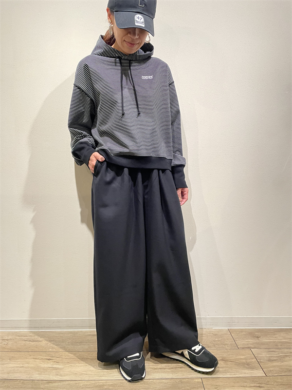 ワイドなシルエットにショート丈デザインが絶妙なバランスです◎。